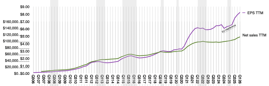 Apple is expected to exceed its own financial guidance for the fiscal second quarter as hardware demand shows signs of resilience. Projections for earnings per share have been adjusted upward to $2.05, rising from a previous estimate of $1.96. This shift reflects a growing consensus that the company will outperform the revenue targets it communicated to the market during its last update.