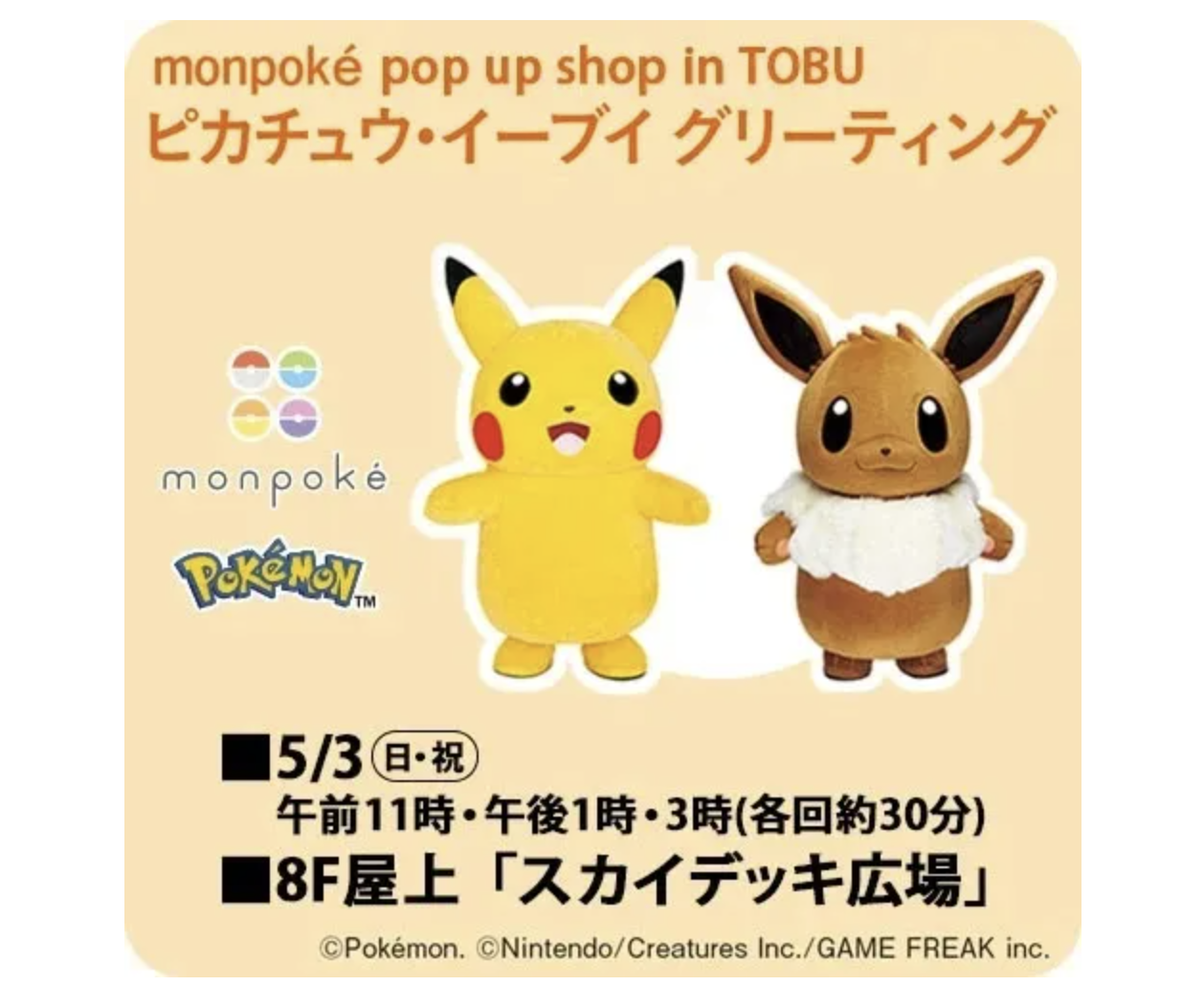 The Pokémon brand will resume character meet-and-greet events this May, starting with the opening of a Monpoké popup store in Tokyo’s Tobu Department Store, following a period of heightened security reviews.
